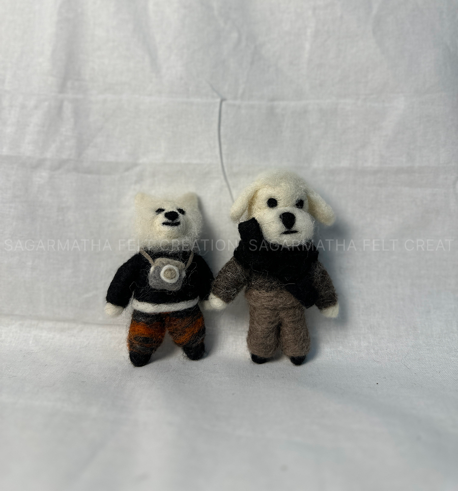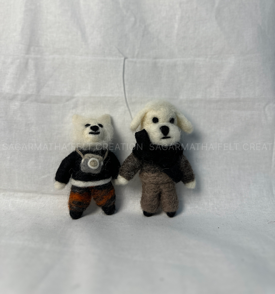 These wool dolls are carefully crafted by skilled artisans in Nepal and are completely customizable. You can choose the animal type (dog, bear, cat, etc. can be customizable), clothing color, accessories (like bags, glasses, scarves, can be customizable), and even pose. Whether you’re gifting a loved one, decorating a space, or looking for something fun and unique, these felt figures are a lovely choice.